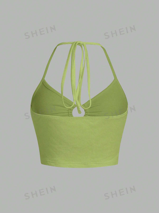 SHEIN Frenchy Vestido ajustado de color verde con abertura en el muslo y tirante de tira