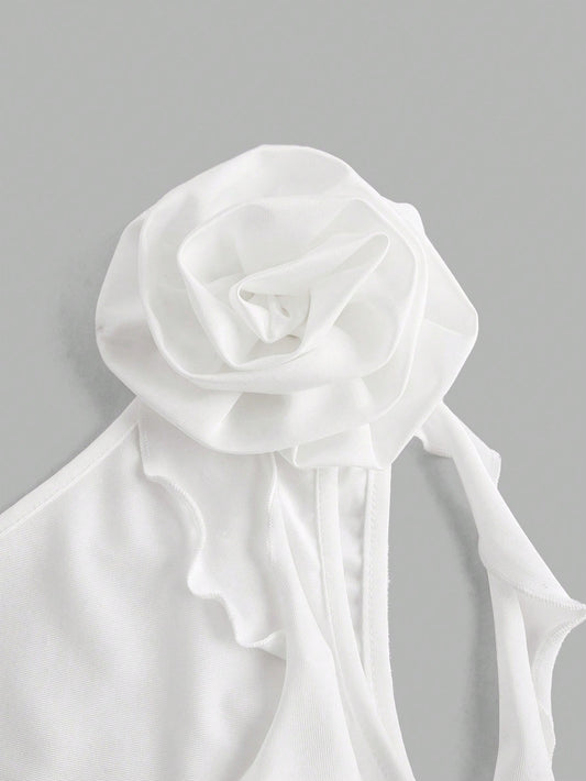 SHEIN ICON Blusa sin mangas de unicolor para mujer con un hombro y detalle de flor en 3D para el verano