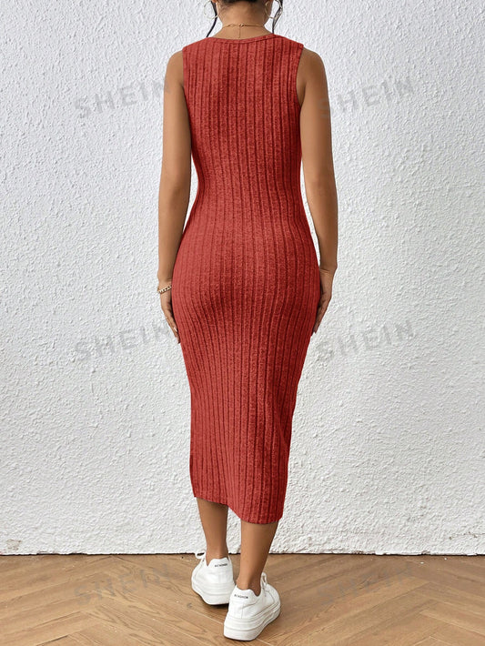 SHEIN Frenchy Vestido ajustado unicolor tejido de canalé