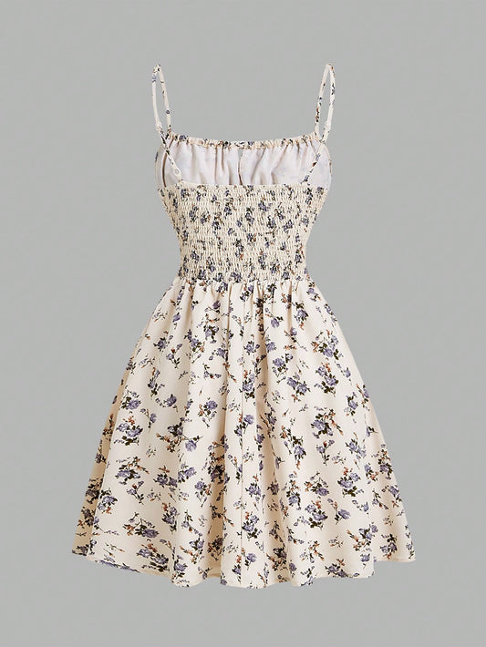 SHEIN Frenchy Vestido de tirantes con estampado floral para mujer, vestido de campo de verano, vestido de campesina, esencial de verano, ambiente de vacaciones