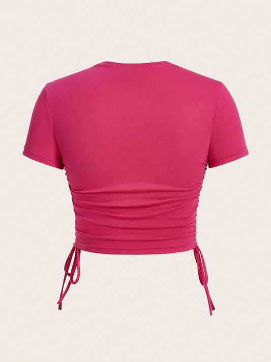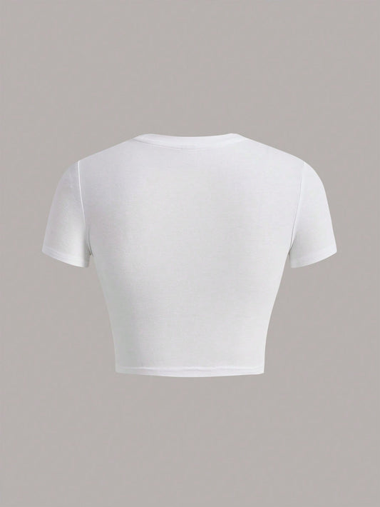 SHEIN ICON Camiseta casual de verano para mujer con lazo y estampado de letras