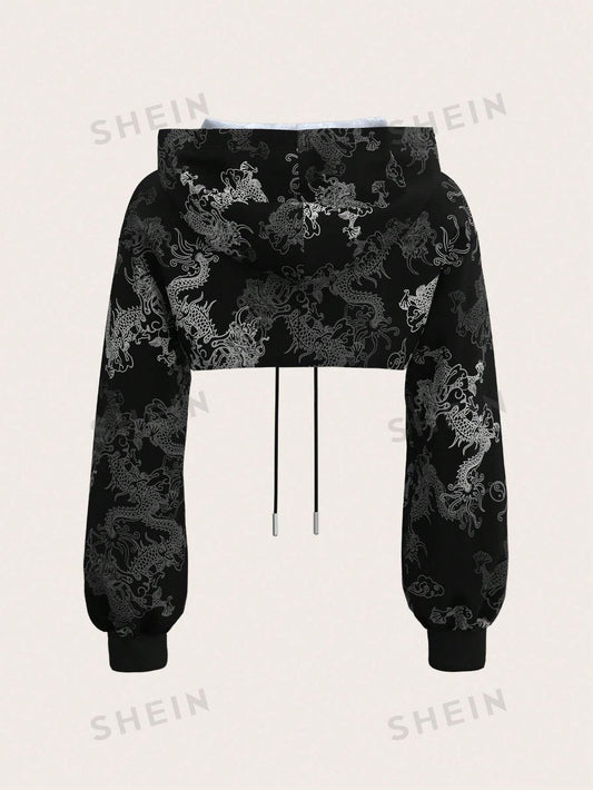 SHEIN ICON Sudadera con capucha corta de moda estampada para mujer