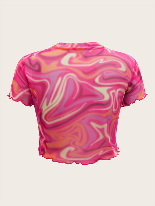 SHEIN ICON Top 90s con estampado de mármol ribete en forma de lechuga corto de malla