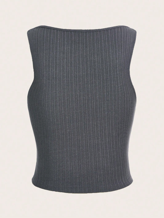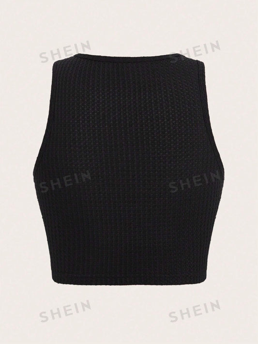 SHEIN ICON Top tank con diseño de parche de letra bajo curvo