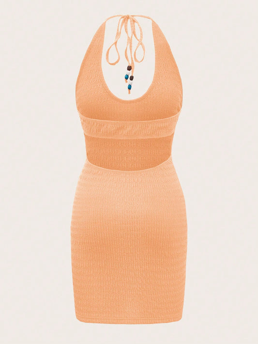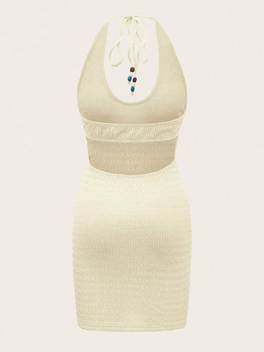 SHEIN ICON Vestido De Textura Con Cuello Halter Y Cuentas Para Mujer