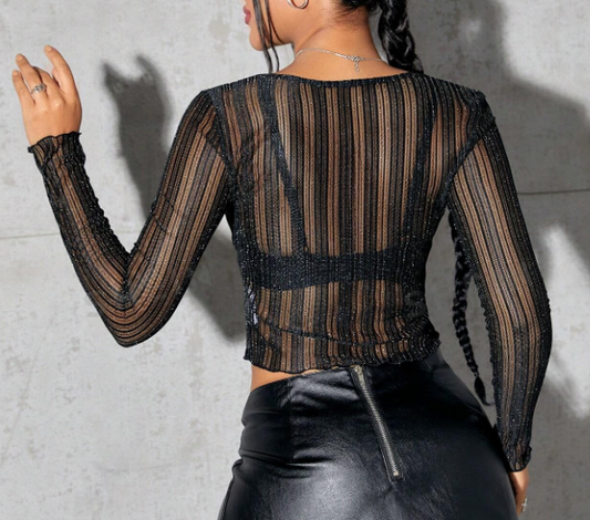 SHEIN ICON Top ribete en forma de lechuga corto brillante de malla sin sujetador