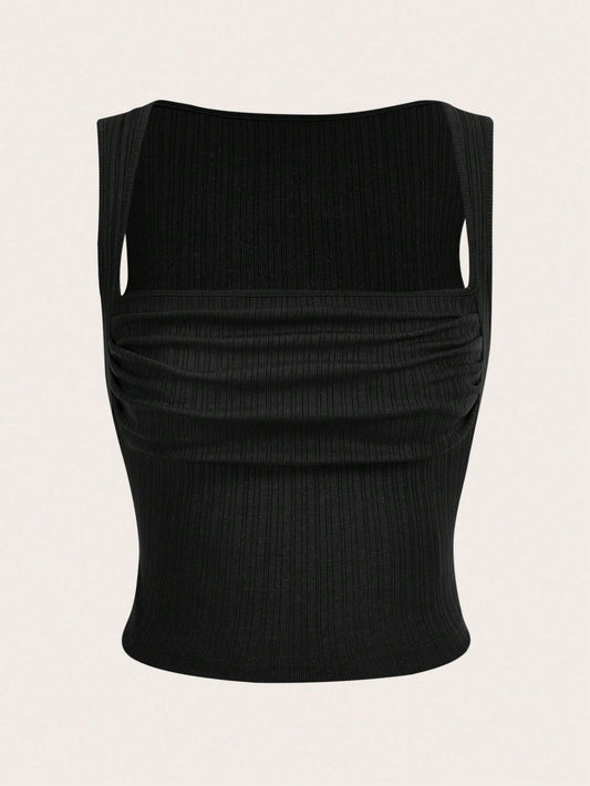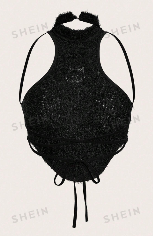 SHEIN ICON Top tejido sin mangas con cuello halter y espalda cruzada mujer