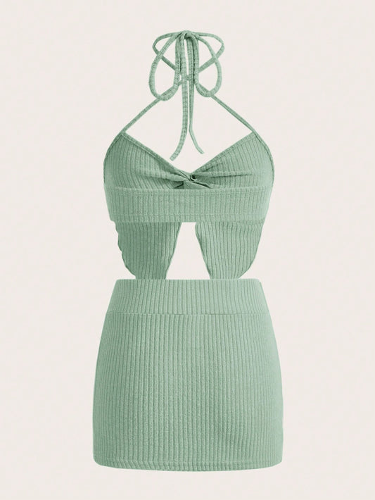SHEIN ICON Top Halter Con Nudo En La Parte Delantera Y Falda A Juego