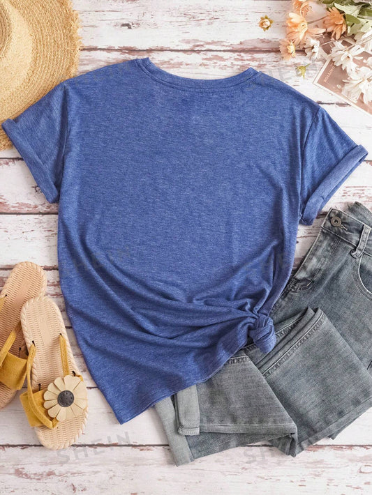 SHEIN LUNE Camiseta vintage de mujer con cuello en V y estampado colorido