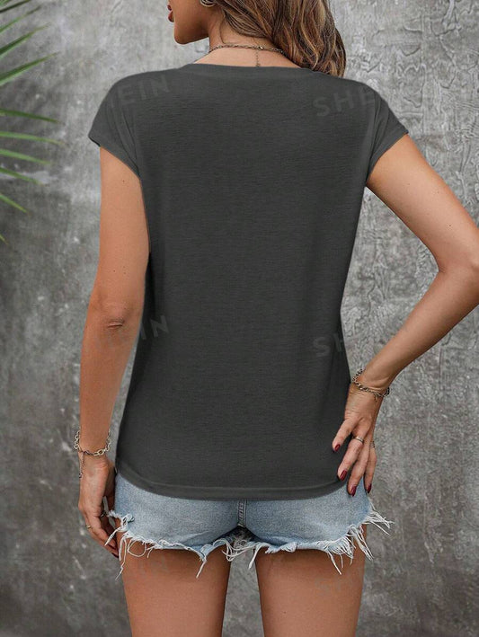 SHEIN LUNE Blusa Casual de Verano para Mujer de unicolor, Escote en V con Detalle Ahuecado