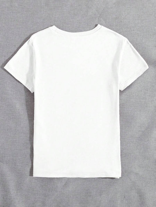 SHEIN LUNE Camiseta informal de cuello redondo, manga corta, con estampado de esqueleto leyendo