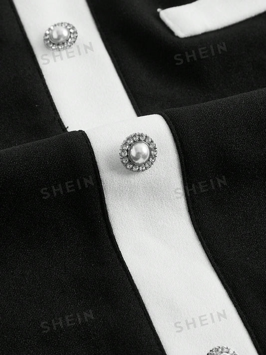 SHEIN MOD 1 pieza Vestido ribete en contraste con lazo delantero con diseño de botón