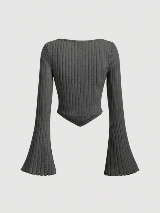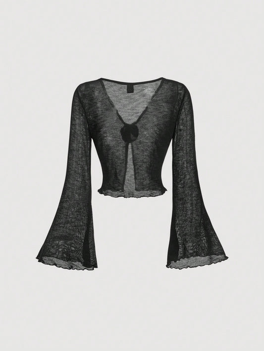 SHEIN MOD Camiseta Con Mangas Acampanadas Y Parte Delantera Anudada