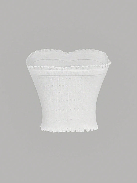 SHEIN MOD Blusa Bandeau De Jacquard Blanco Para Mujer Con Lazos