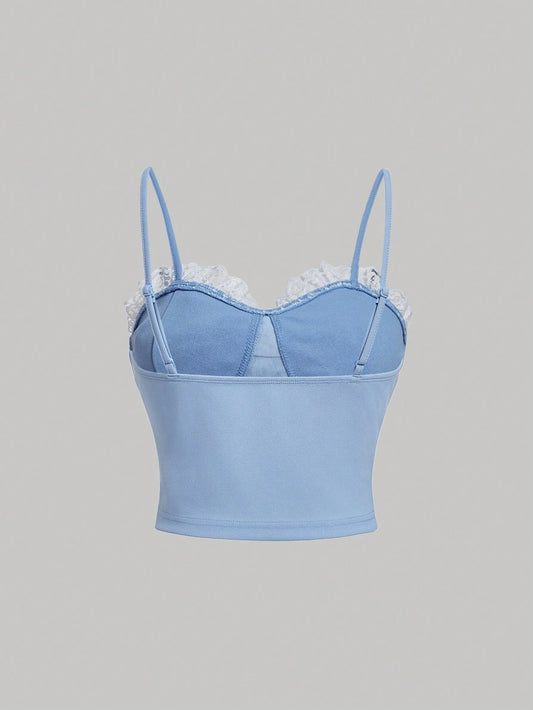 SHEIN MOD Blusa De Encaje Con Espagueti En Camisola De Mujer Con Dobladillo Asimétrico mujer
