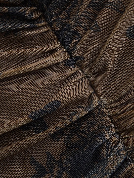 SHEIN MOD Blusa de manga larga con pliegues y estampado aleatorio para mujeres