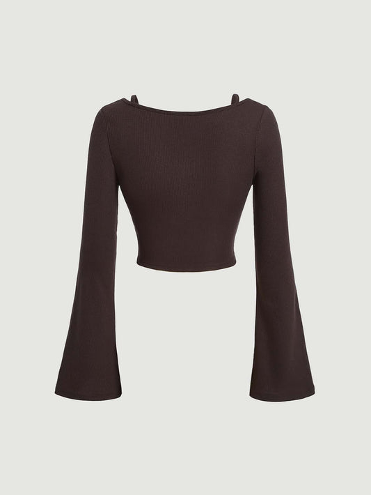 SHEIN MOD Camiseta crop de cuello alto ribete en forma de lechuga de manga campana