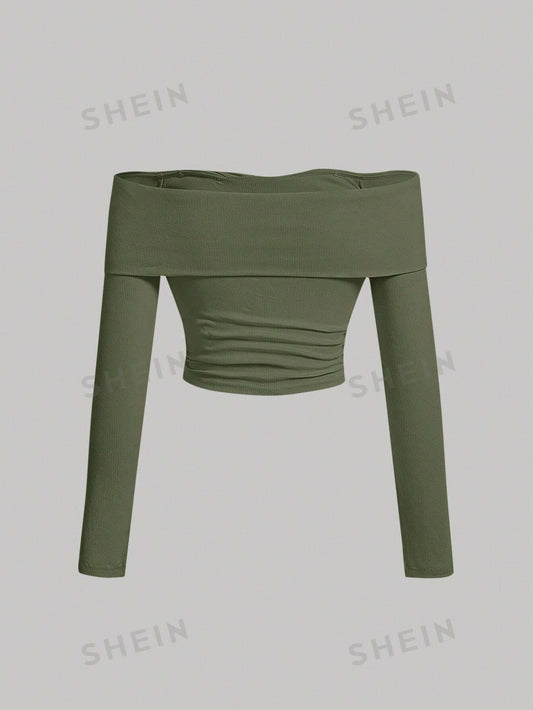 SHEIN MOD Camiseta corta con hombros descubiertos y dobladillo