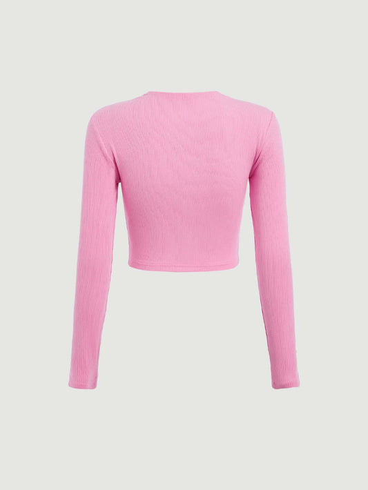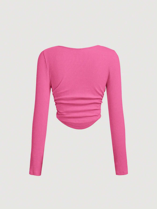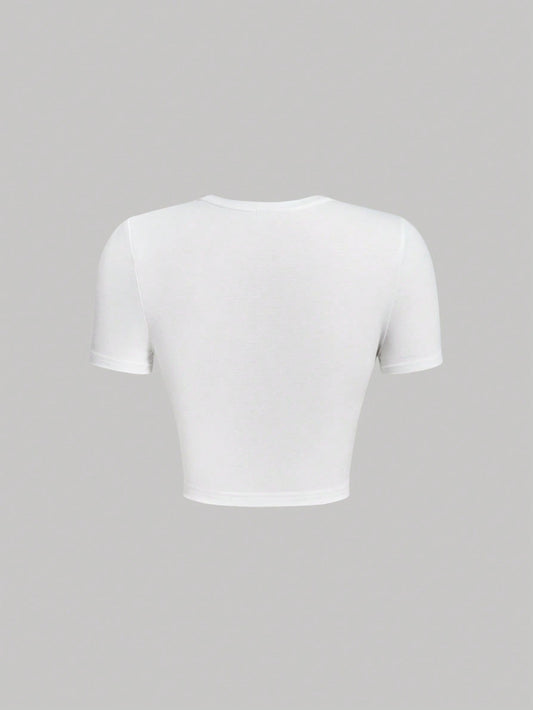 SHEIN MOD Camiseta crop unicolor pecho con fruncido con diseño de nudo