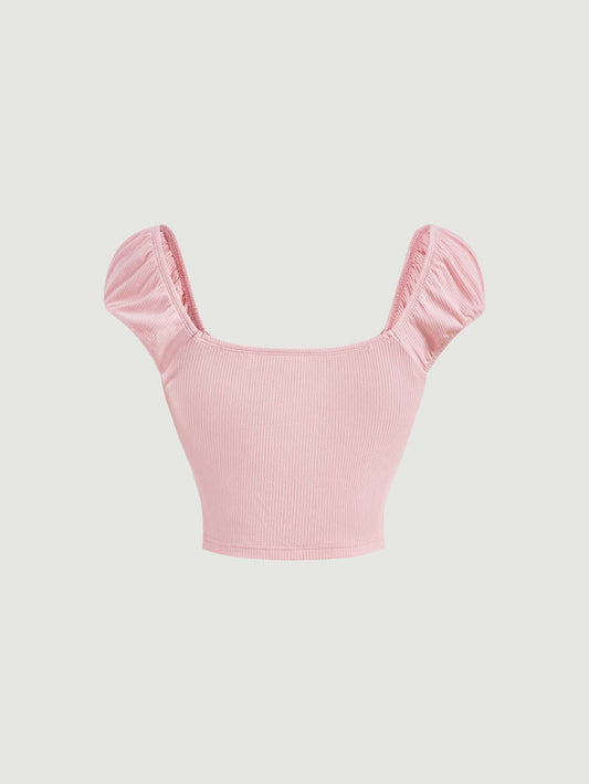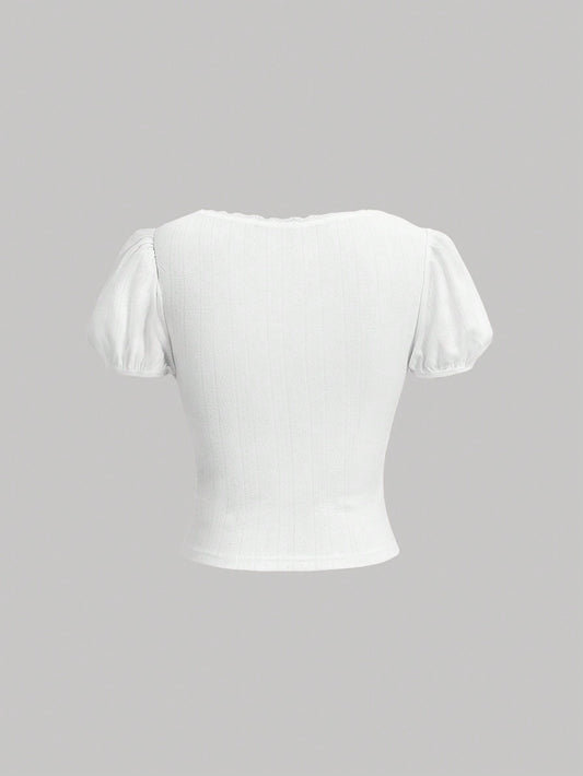 SHEIN MOD Camiseta De Manga Corta Con Mangas Abullonadas Para Mujer