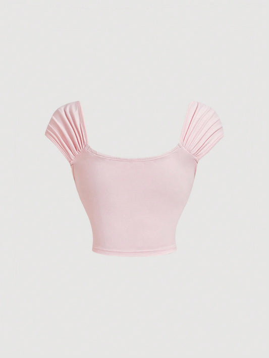 SHEIN MOD Camiseta crop unicolor pecho con fruncido