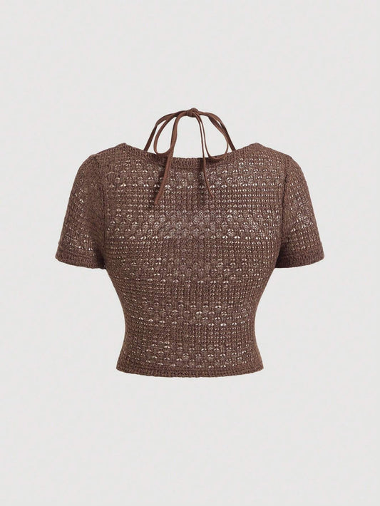 SHEIN MOD Camiseta De Cuello Halter Con Textura Para Mujer