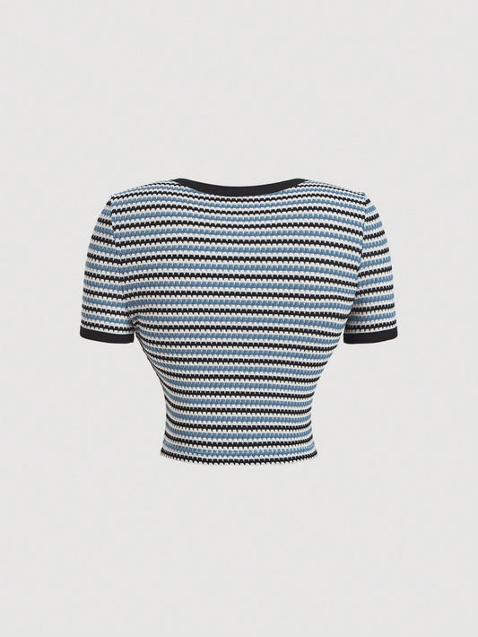 SHEIN MOD Camiseta de manga corta de mujer a rayas tejida con estilo vintage