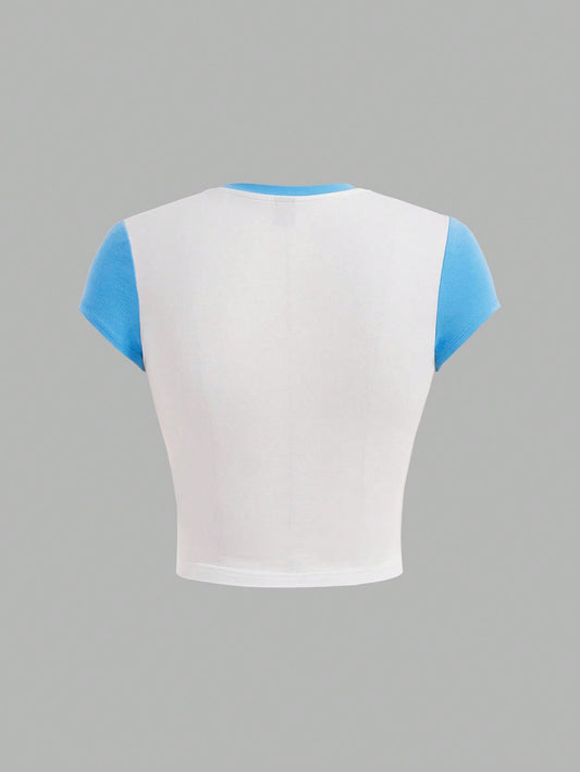 SHEIN MOD Camiseta de verano para mujer '2 en 1' con lazo de ballet coqueto y ribete de encaje en las mangas cortas Tops Kawaii