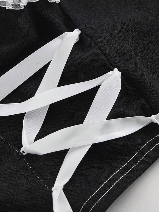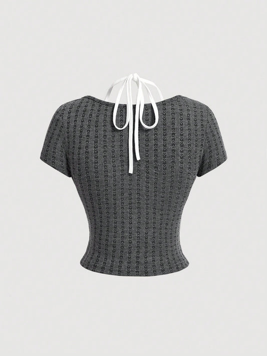 SHEIN MOD Camiseta De Mujer Con Cordón Frontal Y Detalles De Encaje
