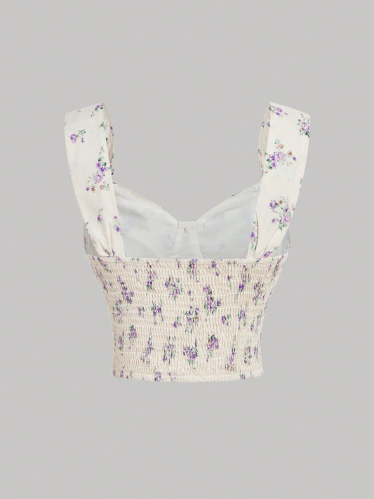SHEIN MOD Camiseta sin mangas corta impresa dulce y ajustada para mujer