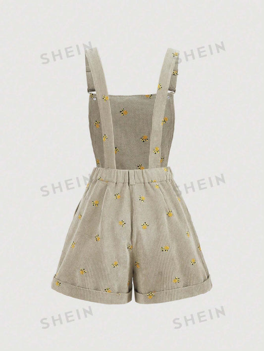 SHEIN MOD Monos casuales de borde deshilachado con bordado floral para mujer