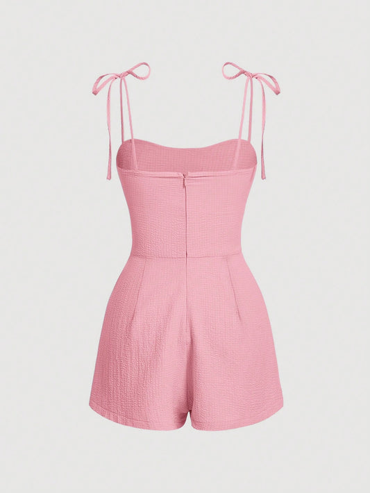 SHEIN MOD Mono de tirantes unicolor de hombros con cordón pecho con fruncido