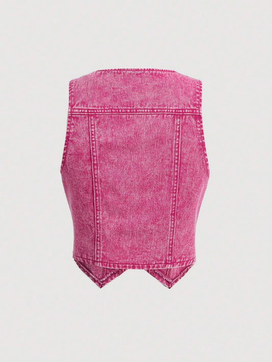 SHEIN MOD Mujeres chaqueta y abrigo de mezclilla sin mangas con escote en V y botones delanteros de unicolor