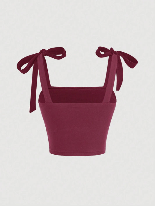 SHEIN MOD Negro Corbata Verano Top Sólido Hombro Fruncido Top Con Tirantes Anchos
