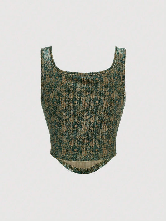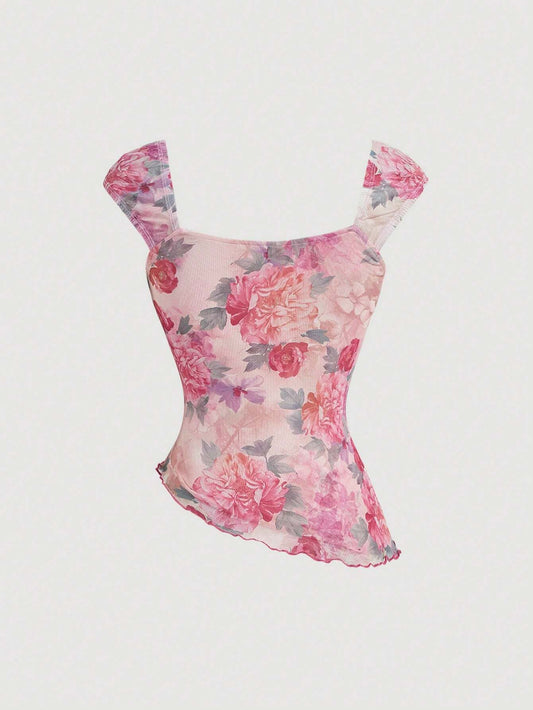 SHEIN MOD Top Asimétrico Tipo Camisola Con Patrón De Flores En El Dobladillo