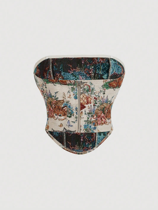 SHEIN MOD Parte superior tipo tubo con jacquard de gato para mujer, blusas para mujer, parte superior de Halloween, parte superior renacentista, blusa linda, atuendos de despedida de soltera, parte superior vintage sexy