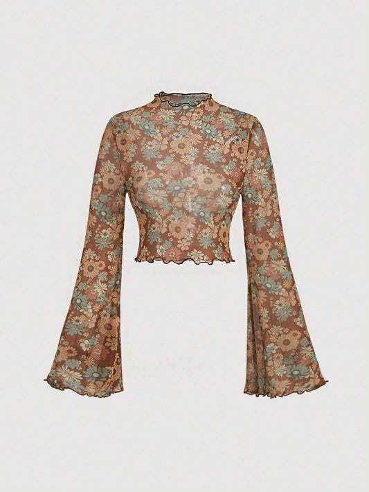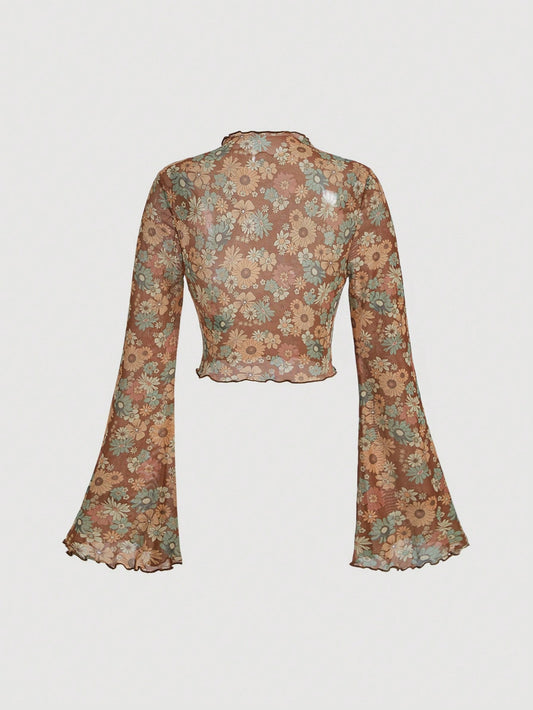SHEIN MOD Tops de mujeres Acaracolado Transparente Floral todo estampado Casual