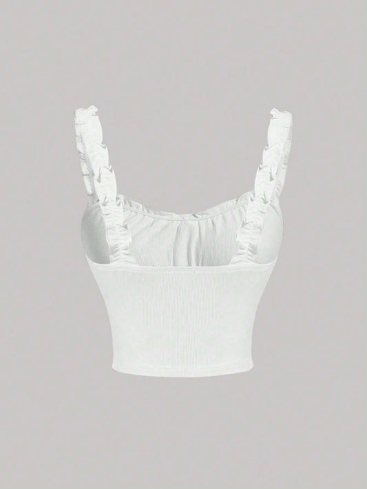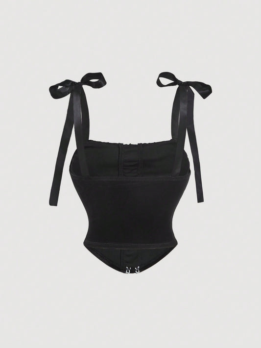 SHEIN MOD Top ribete fruncido con lazo delantero ancho tirantes