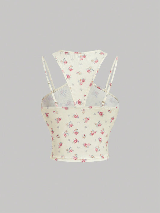 SHEIN MOD Top romántico de verano con textura de tela decorado con flores