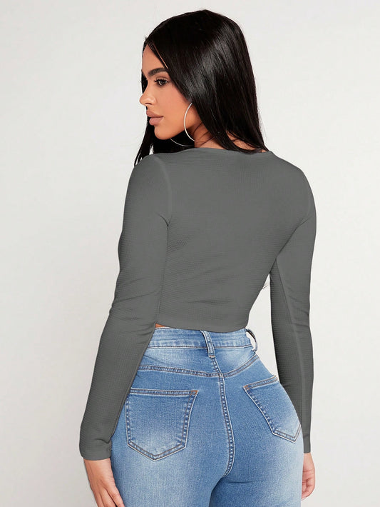 SHEIN PETITE Top De Mujer Ribeteado Tejido Con Diseño De Canalé
