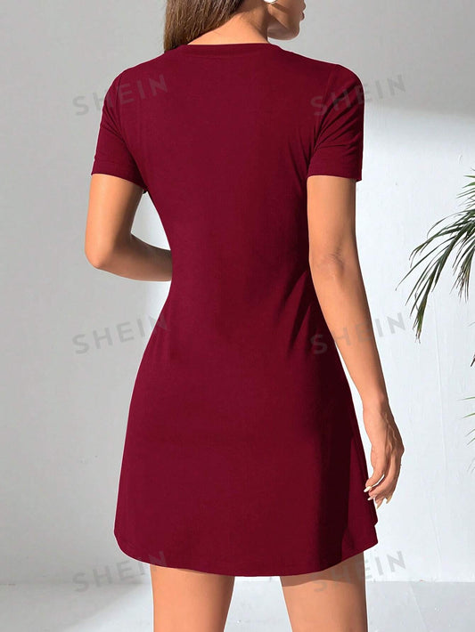 SHEIN PETITE Vestido diario sencillo de manga corta y unicolor para mujer
