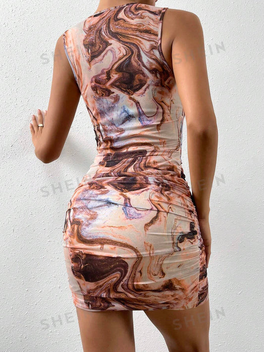 SHEIN Privé Vestido ajustado con estampado de mármol fruncido lateral