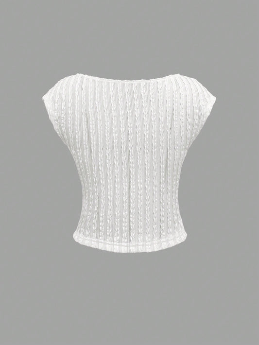 SHEIN Sweetro Camiseta informal de mujer de unicolor con cuello en forma de corazón y mangas abombadas