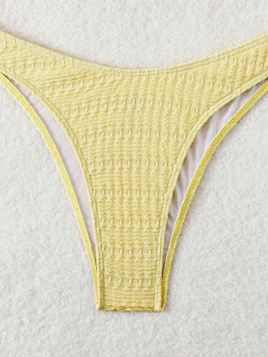 SHEIN Swim Conjunto de bikini bandeau de unicolor para mujer, traje de baño amarillo de playa de verano