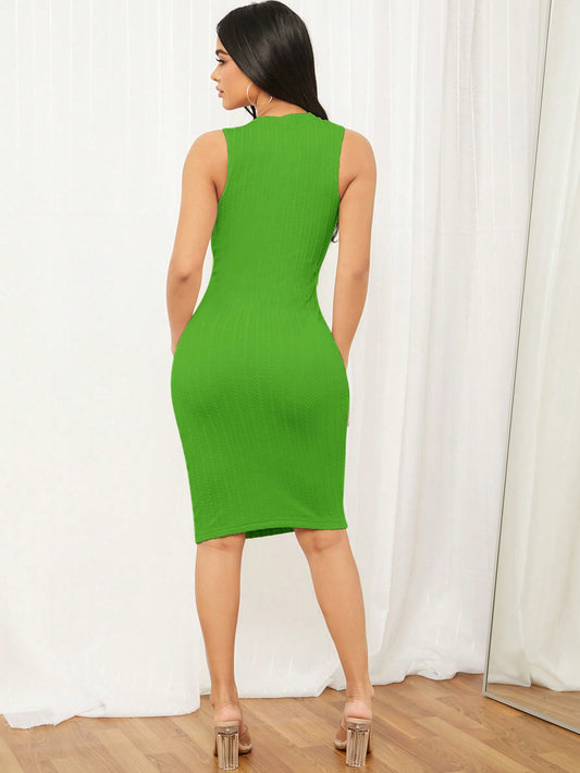 SHEIN SXY Vestido elegante de lápiz ajustado al Body de mujer para verano con cuello de tripulación