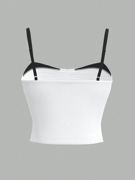 Sweetina Camisola corta Y2K de color blanco y negro de estilo casual y versátil con adorno de encaje a contraste
