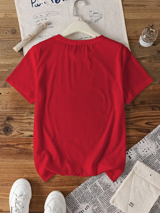 The Nun X SHEIN Camiseta de manga corta casual de cuello redondo con gráfico de figura de terror en rojo