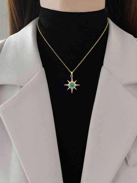 Un collar de colgante de bola de estrella completa de acero inoxidable de lujo y elegante con diamantes completo para mujeres