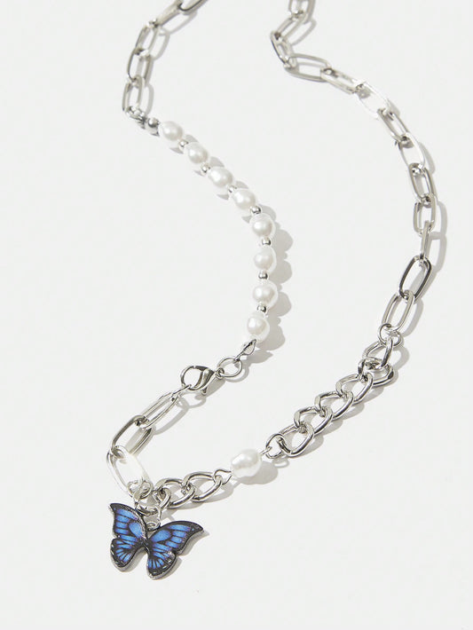 Twin Melody X SHEIN SHEIN MOD 1 pieza Collar de mariposa y perla, apto para uso diario de mujer en primavera y verano