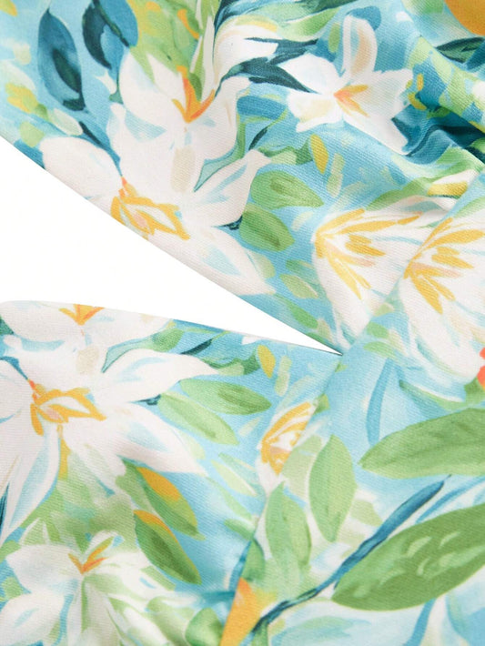 VRSO Top corto halterneck de corte ajustado para mujer con estampado floral para vacaciones